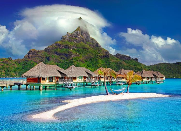 Often referred to as the "Pearl of the Pacific," Bora Bora is a picture-perfect island with stunning turquoise lagoons and majestic Mount Otemanu at its center. The island's luxury resorts offer lavish overwater bungalows, providing guests with direct access to the vibrant marine life below. Beyond the beaches, visitors can enjoy water activities like jet skiing, paddleboarding, and shark diving.